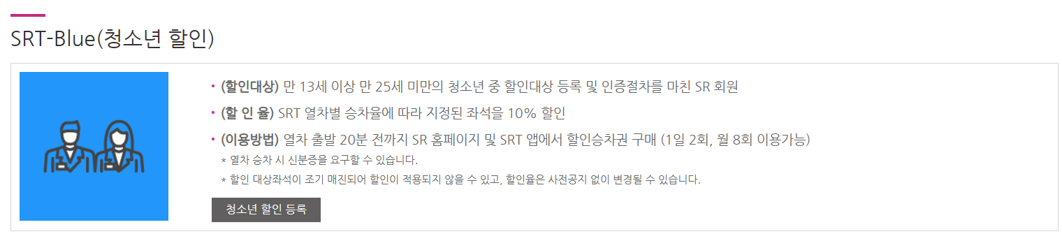 할인 승차권은 SRT 앱과 홈페이지를 통해서만 예매/ 환불이 가능합니다.