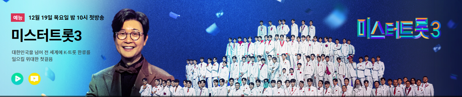올해마지막을 뜨겁게 장식하고 내년을 감동으로 시작하게 될 미스터트롯3이 방영됩니다.