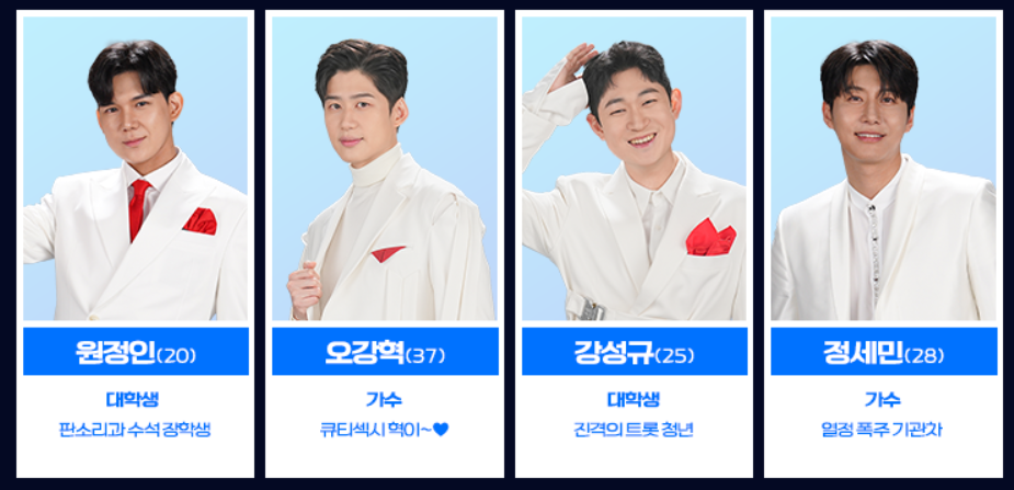 장민호, 영탁, 이찬원, 정동원, 김희재, 안성훈, 박지현, 나상도, 진욱, 박성온