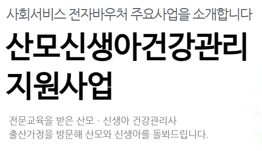 산모ㆍ신생아 건강관리사가 일정기간 출산가정을 방문하여 산후관리를 도와주는 산모ㆍ신생아 건강관리 서비스 이용권을 지급합니다.