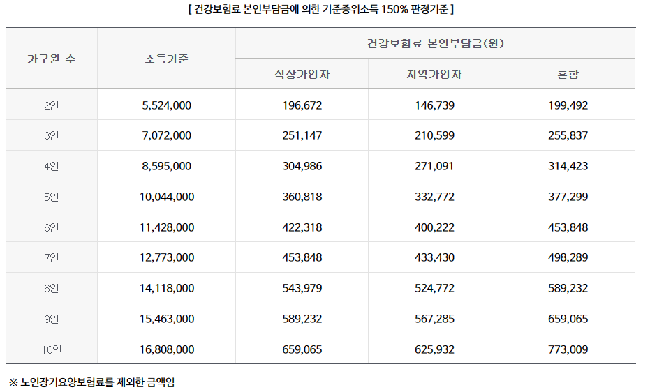 산모 및 배우자의 건강보험료 본인부담금 합산금약이 전국가구 기준 중위소득 150%이하에 해당하는 출산가정