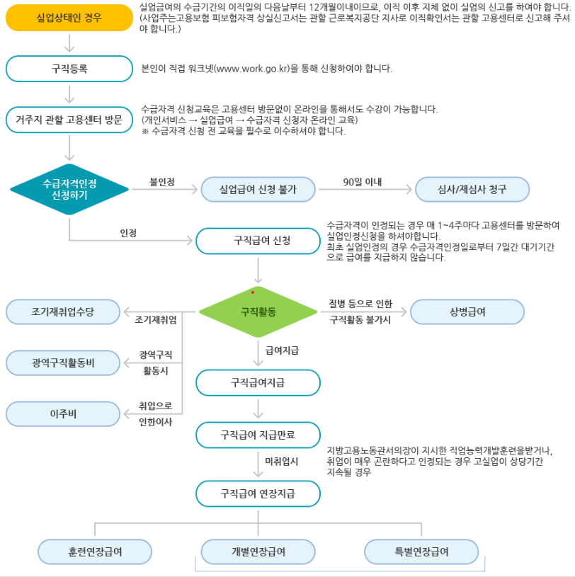 실업급여는 신청없이 재취업하면 지급을 받을 수 없게 되므로 퇴직 즉시 신청하시길 바랍니다.