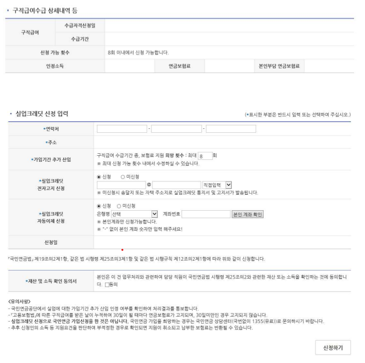 구직급여 신청시 국민연금 실업크레딧도 신청합시다~!!!