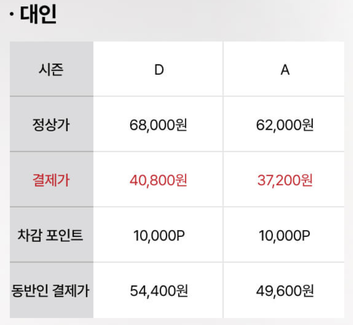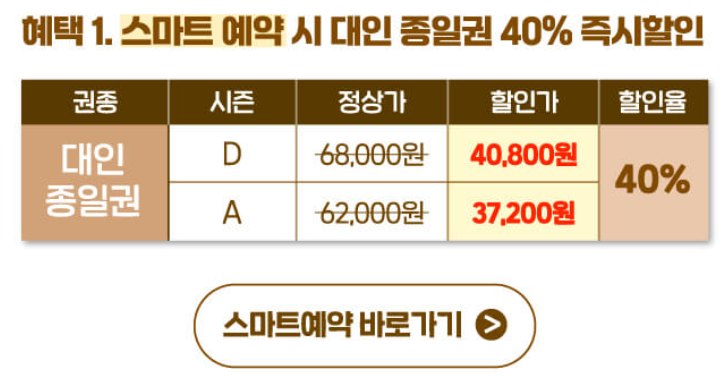 또한 스마트 예약 > 홈페이지에서 결제 하시다면 51~52% 할인되고 동반 3인까지 30% 할인가에 구매할수 있어요