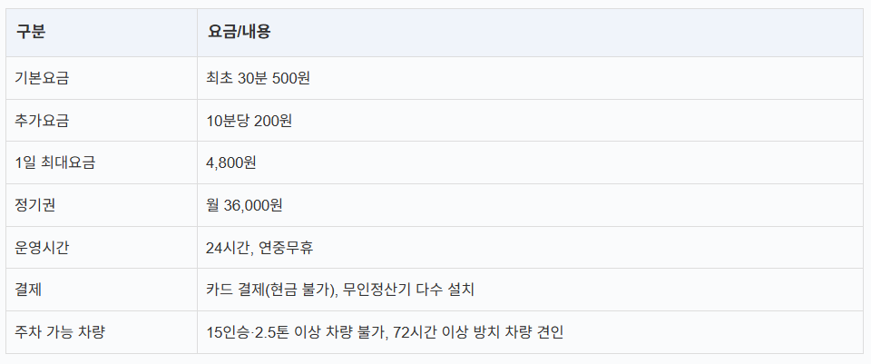 - 정기권 적극 활용: 월 36,000원으로 출퇴근·장기 주차 시 비용 절약