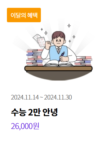 > 할인혜택은 수험생 본인에게만 적용, 다른 할인이나 쿠폰과 중복적용 안됨