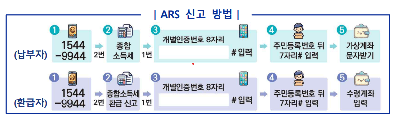 모두 채움 안내문은 받은 납세자는 ARS 전화 (1522-9944) 한통으로 간편하게 신고 할수 있습니다.